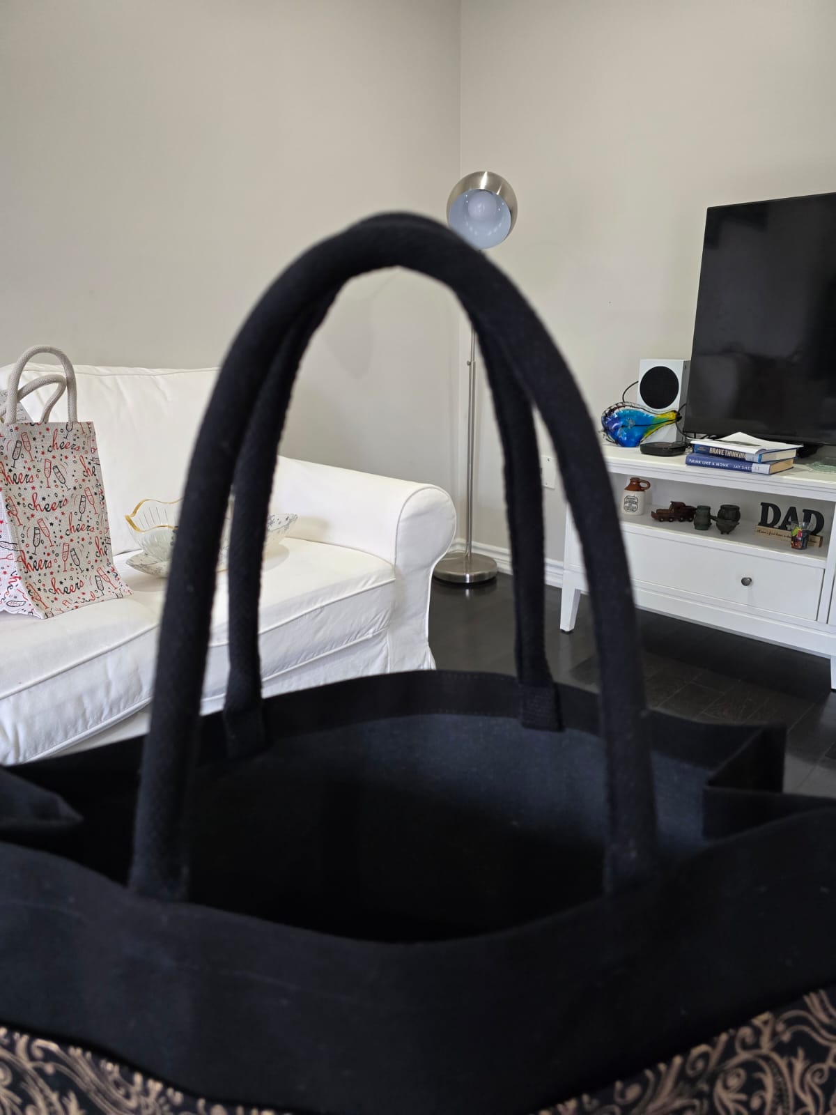 Comfortable Handles: Soft, padded cotton handles in a matching black provide a comfortable grip for all-day carrying.